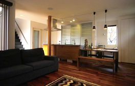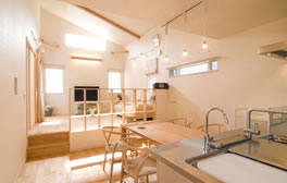 スキップフロアリビングと無垢カバ桜の床材がポイント
